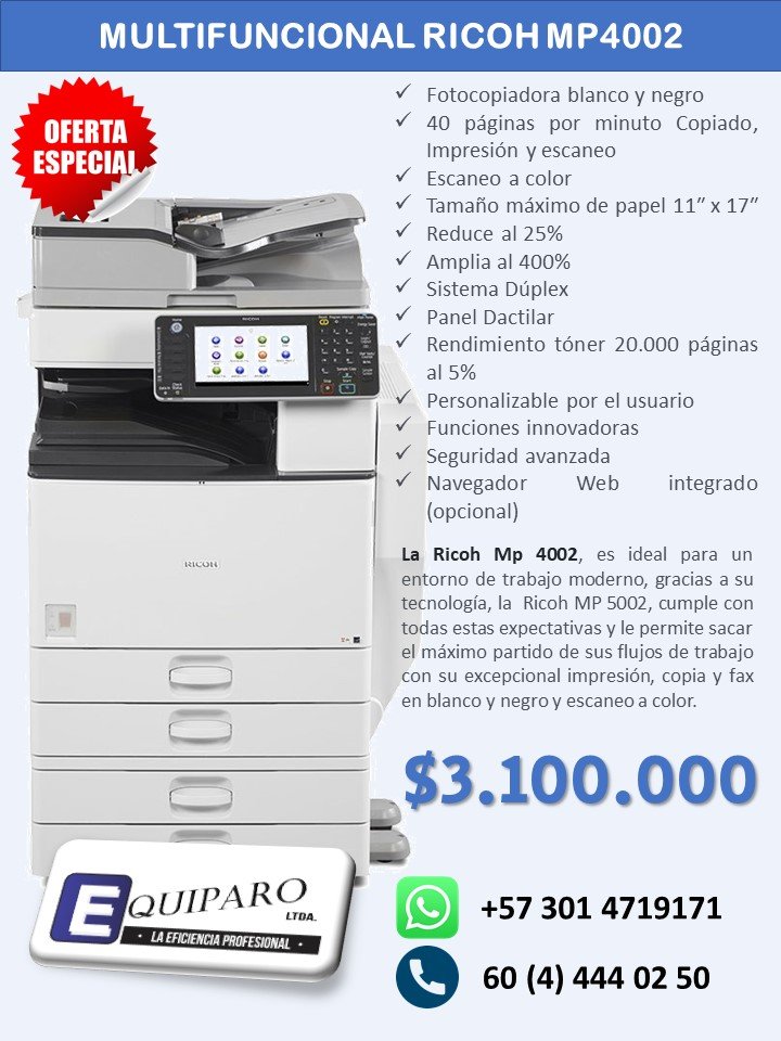 Fotocopiadora blanco y negro 36 copias por minuto Impresiones por minuto Escaneo a color y blanco -negro Tamaño máximo de papel 11″ x 17″ […]