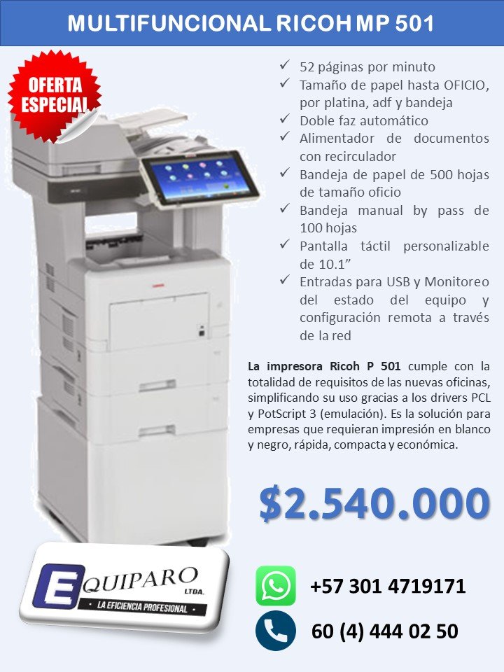 Fotocopiadora blanco y negro 50 páginas por minuto Copiado, Impresión y escaneo Escaneo a color Tamaño máximo de papel 11″ x 17″ Reduce […]
