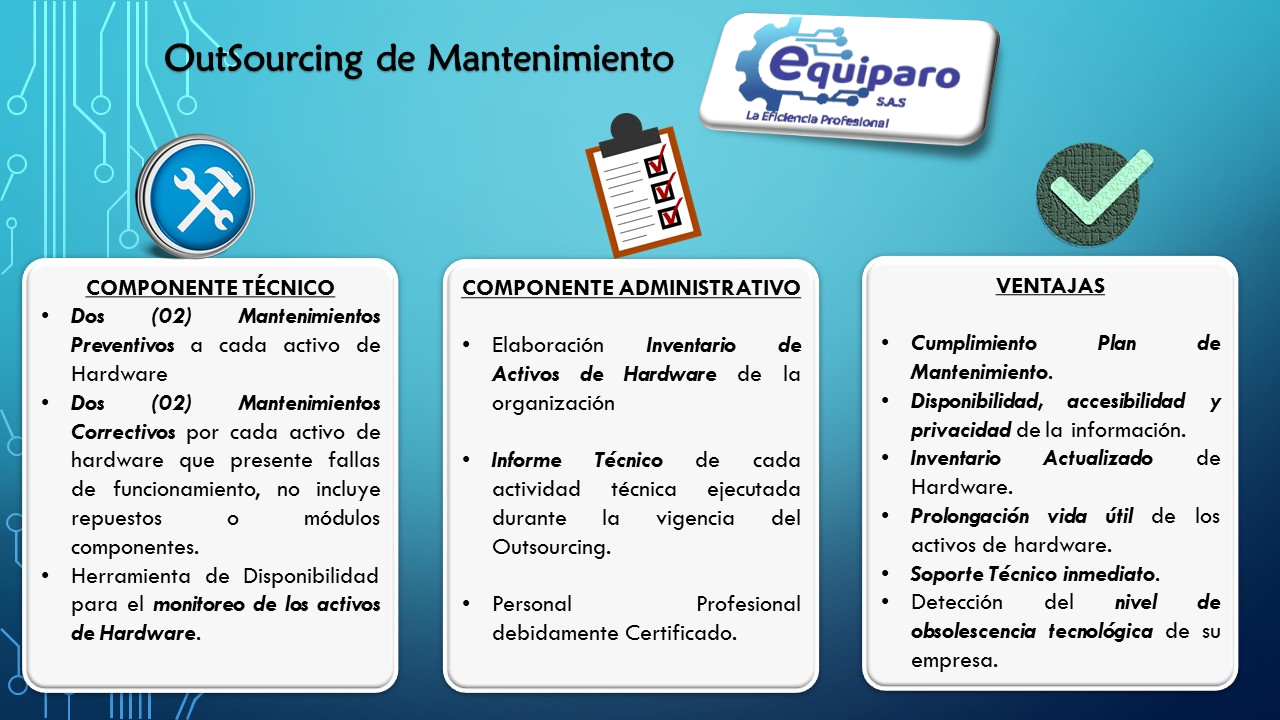 EQUIPARO LIMITADA, una Empresa de servicios integrales de informática, con amplia experiencia como aliado tecnológico del sector público y privado.La eficiencia profesional de nuestro capital humano y su pasión por los retos tecnológicos nos caracteriza.